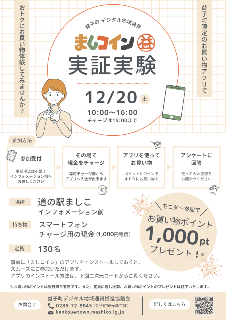 ましコインのチャージからお買い物の体験をいただける実証実験を「道の駅ましこ」にて開催いたします。